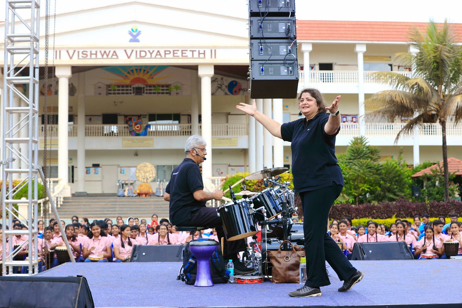 A much anticipated event, the Drum Jam was held at Vishwa Vidyapeeth on 26th August, 2023. Renowned singer, musician and actor, Ms Vasundhara Das along with drummer extraordinaire, Roberto Narain and her team of musicians conducted the drum jam for students and parents. The entire school ground reverberated with the sound of drums and singing. Students created their own rhythm guided by Mr Narain. An unforgettable experience for all involved, the drum jam will stay in all our memories for years to come.
