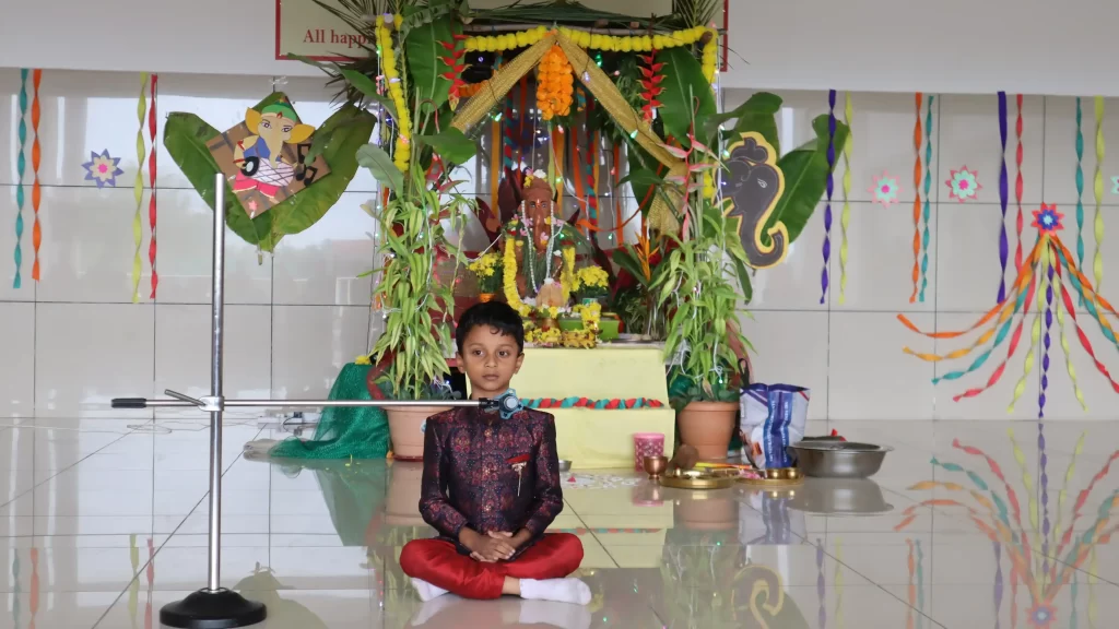 On 9th September 2024, the Ganesha Chaturthi celebration took place with great enthusiasm and devotion on 09/09/2024. Ganesha Chaturthi is an annual festival dedicated to Lord Ganesha, the remover of obstacles and the god of wisdom and prosperity. We made Mandap. The event space was beautifully decorated with flowers, colorful lights, and statues of Lord Ganesha. The main idol of Lord Ganesha was placed on a grand pedestal, adorned with garlands and lights. The celebration started with a traditional aarti, followed by the chanting of mantras.Pooja performed in accordance with Hindu traditions and rituals, starting with the Pranapratishtha (infusing life into the idol). Prasad is offered in the form of modaks (Lord Ganesha’s favorite sweet), fruits, and sweets. Cultural Programs: After the pooja, cultural performances were held, where children and adults participated in singing bhajans, dances, skit and recitations dedicated to Lord Ganesha. The performances brought a lively and joyful atmosphere to the event.