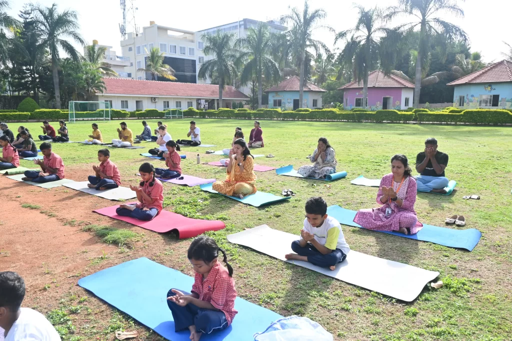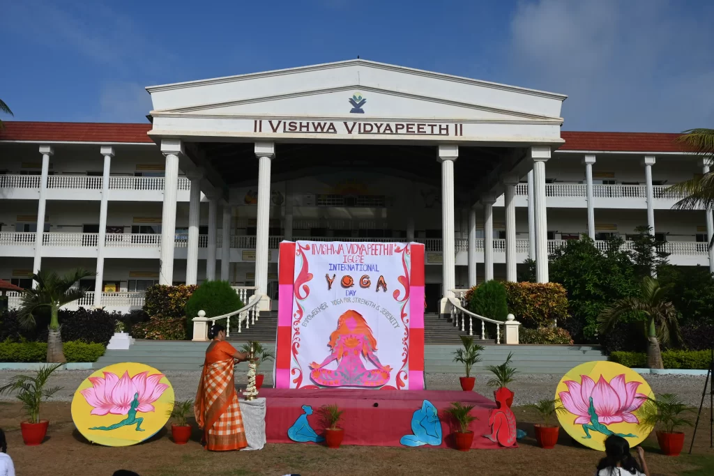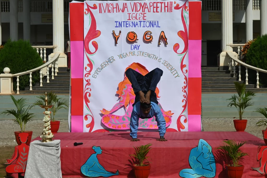 Celebrating International Yoga Day at Vishwa Vidyapeeth IGCSE! It was a joy to see students, teachers, and parents coming together to embrace wellness and mindfulness. The event brought together the entire community to practice the healthy habit of doing yoga aasanas. The students presented a display, followed by body bending exercises by the yoga teacher and finally all present took part in the yoga display.