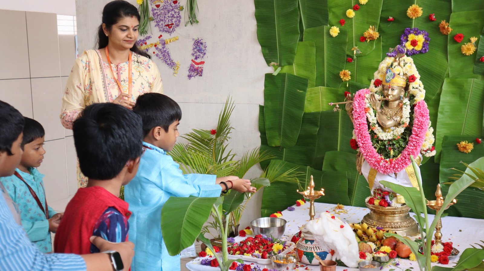 The tiny tots of our Pre-primary & primary wing celebrated Krishna Janmashtami with grandeur and magnificence. Our adorable little ones dressed as Radha and Krishna added a traditional touch to the celebration. The puja was performed by the staff and children of the school; the fragrance of flowers and incense sticks filled the air with devotion. A splendidly colourful program was organized by the children where students presented songs, dance performances and recited shlokas.