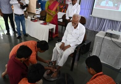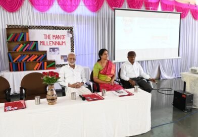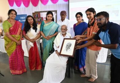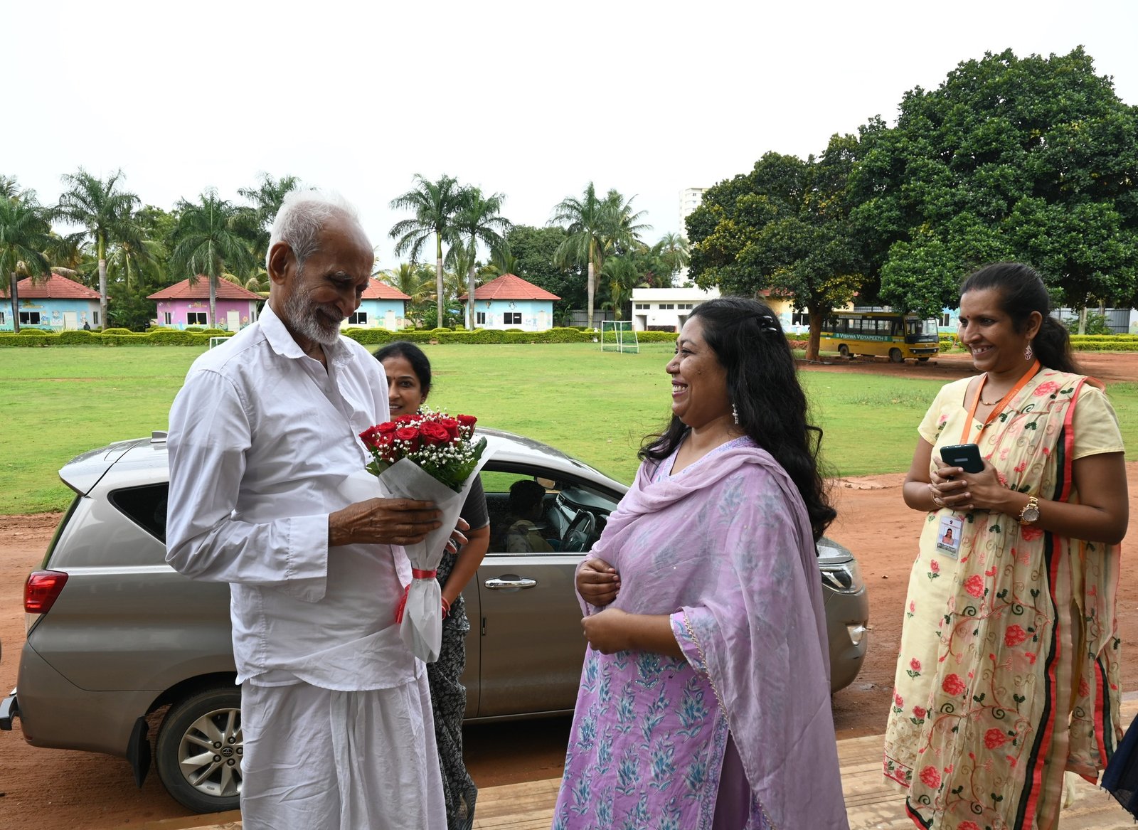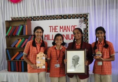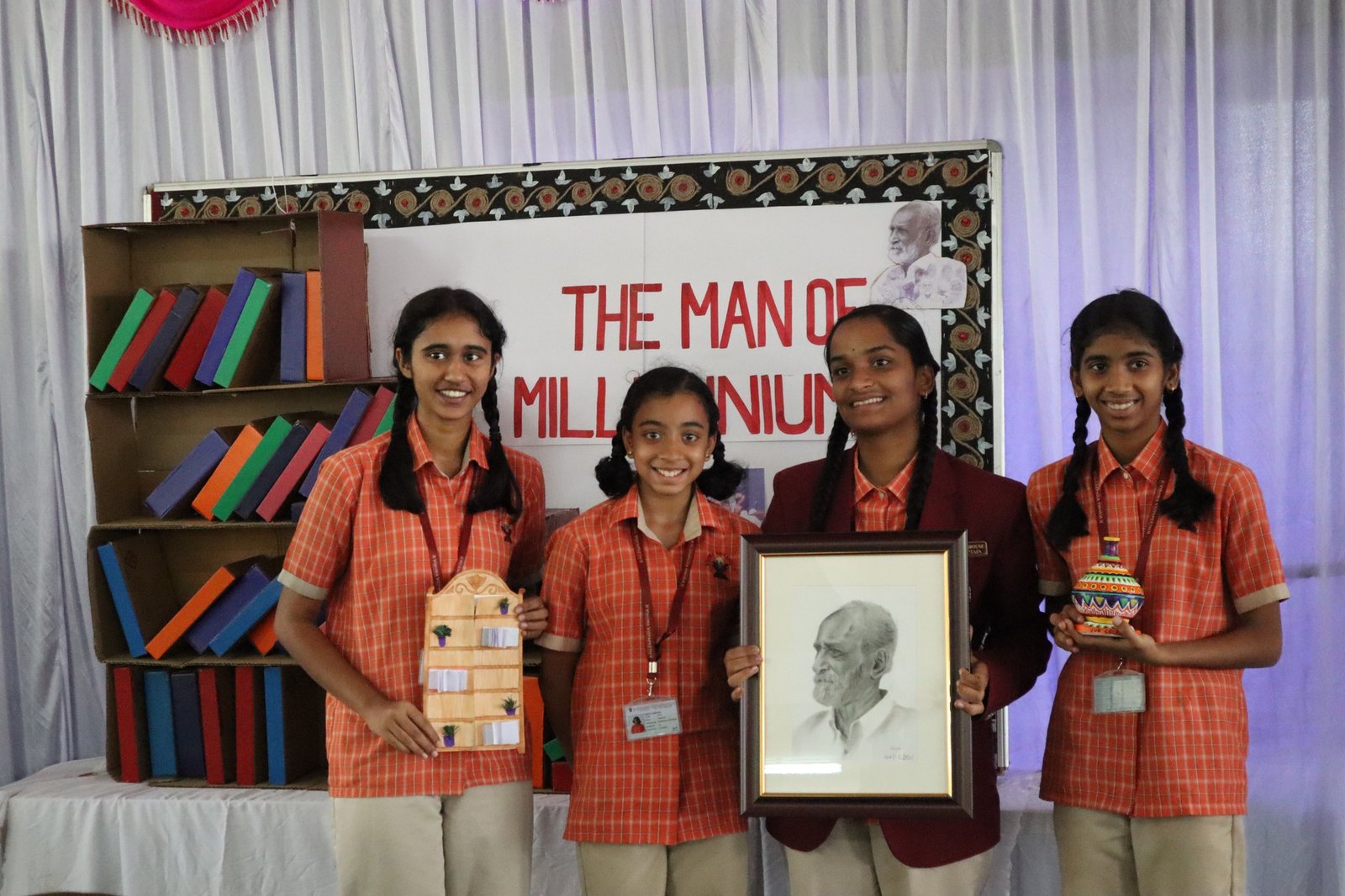 We are honoured to receive the blessings of the eminent philanthropist, Sri Palam Kalyanasundaram. We are thankful and extend our gratitude to the Padmashree Awardee for gracing us with his presence. An event was planned to felicitate the guest with a short cultural programme which consisted of a mesmerising welcome dance by class 7 cbse student, Loukya Reddy. She presented the traditional form of dance named karaga. The guest was felicitated with student made thankyou cards and a live portrait of him by our beloved Director ma’am expressing deep gratitude at his visit. A special felicitation was offered by conducting Pada Puja to the honoree. Palam sir was requested to deliver a speech to motivate the gathering and it was a cherishable moment knowing about this great man. In his speech he mentioned his mother to be his role model and inspiration to achieve great height. The event played an important role in providing our students to interact and exercise the art of interviewing to know more about and appreciate the distinguished guest. The event was also covered by TV 5. To commemorate the guest’s visit his autograph was taken on a huge canvas book created by our students. The programme culminated with vote of thanks and Shanti Mantra. The students and staff were blessed with this lifetime opportunity to witness and interact with this real life hero who has won millions of hearts with his humble and helpful attitude. We are immensely thankful to our beloved Director Ma’am Smt Suseela Santhosh who strived to make it a reality for the students to meet such eminent figures in person who are only read and seen from far.