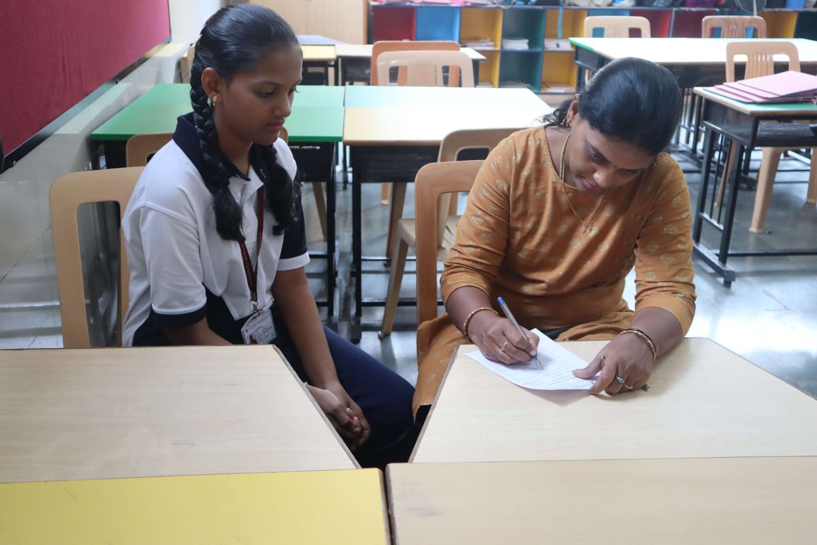 A student-led PTM is similar to a parent-teacher Meeting, but the student is present and in charge of leading the discussion.Students also wrote a reflection on their grades and study habits. They set goals for the next semester and organized their graded work section.