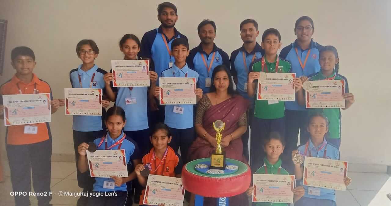 Grade 4 to 8 students from Bangalore to Haryana participated in a Yoga Sports Federation of India competition, exploring Kurukshetra and its landmarks. The winners were Sravana Hithyshi, Rani Nirini Mahajan, Akshara Jorapur, and Shriya S Shirol. Bhuvan DP and Pranav EV also won in the 10-14 years boys category. Other winners included P. Pranathi Reddy, Keerthana A, Havisha S, and Aakash M.