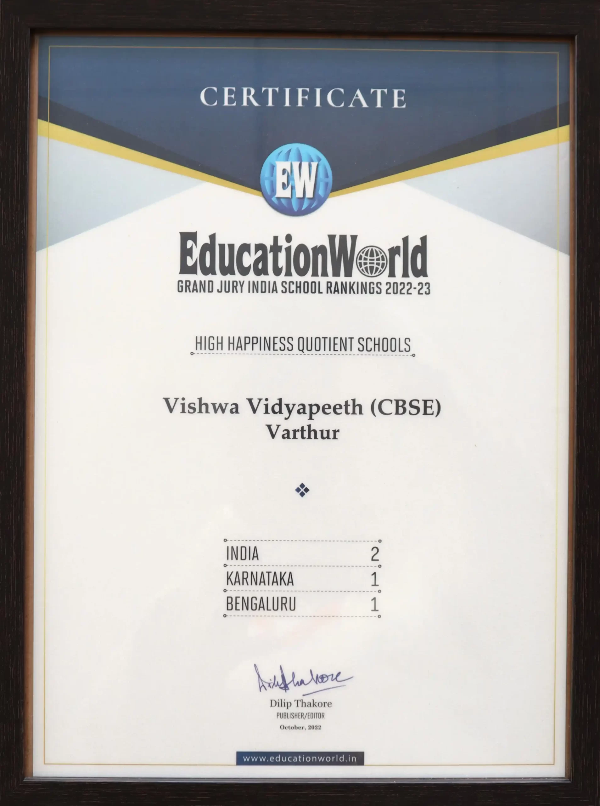 Vishwa Vidyapeeth is a distinguished private day school located in Whitefield area of Bengaluru.