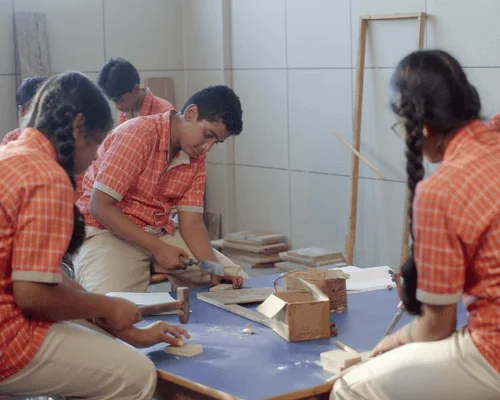 Learning woodwork can help develop fine and gross motor skills and hand-eye coordination. It helps the children to grow socially and emotionally through self-confidence, responsibility, appreciation for self and others, and respect for materials and safety. It also allows to imbibe skills like sharing and teamwork.