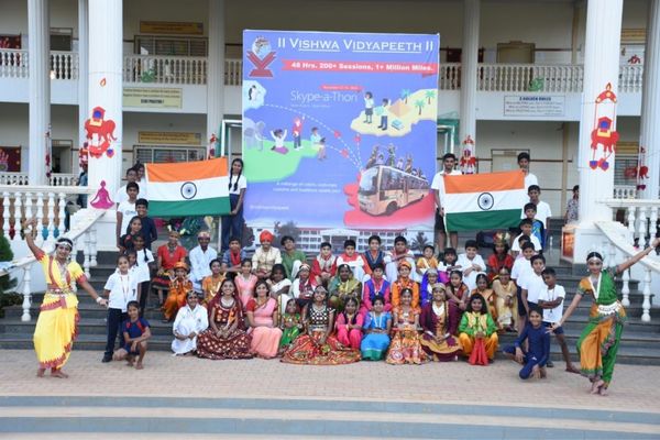The whole-hearted support of our parents and the over-whelming response of our students helped Vishwa Vidyapeeth to reach our target of 11,57,492 virtual miles which added a feather to our cap. We were able to cross 260 sessions of skype which helped us cover more than 40 countries. Students were divided into batches which came in a rotation over 48 hours and each session had a breakup of Mystery Skype wherein the students on both sides took turns to decode the country to which they were connected. This was also followed by depiction of our country’s rich culture by our children through display of Yoga asanas, Folk dance forms, Rendition of music with instruments and indigenous art forms of India.