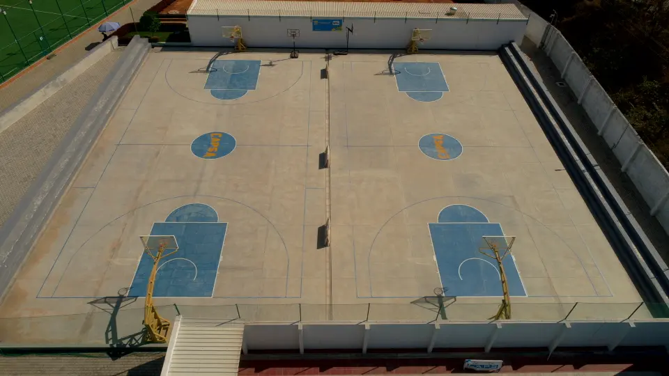 2 FIBA Approved outdoor Basketball courts with spectator gallery and change rooms with lockers