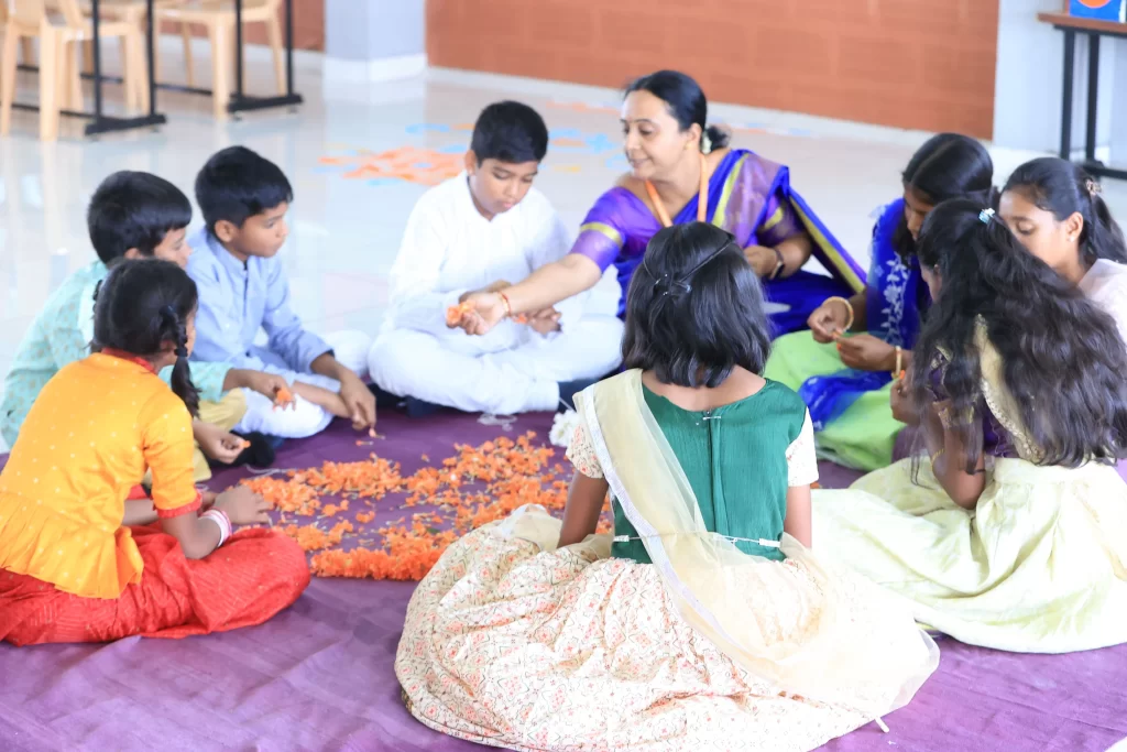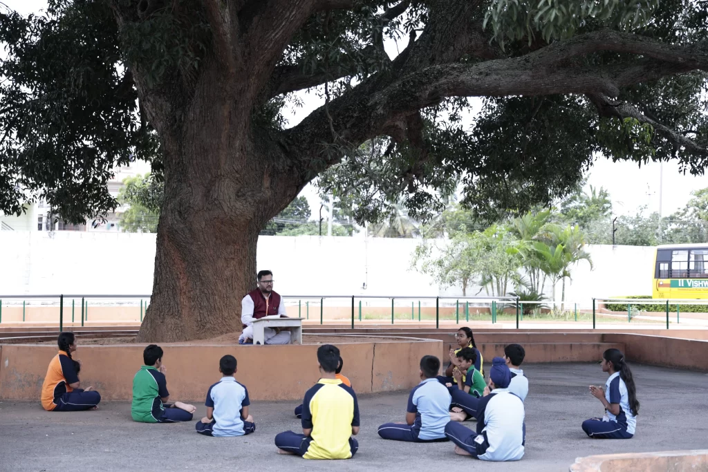 Vishwa Vidyapeeth’s ‘Back To Gurukula’ is an education system that blends ancient knowledge with modern schooling. This hands-on teaching style is experiential. It fosters critical thinking and problem-solving. It also encourages students to analyse, evaluate, and create solutions on their own. We immerse students in real-life learning environments which empowers them to make informed decisions and develop cultural sensitivity. They learn to understand diverse perspectives and traditions.