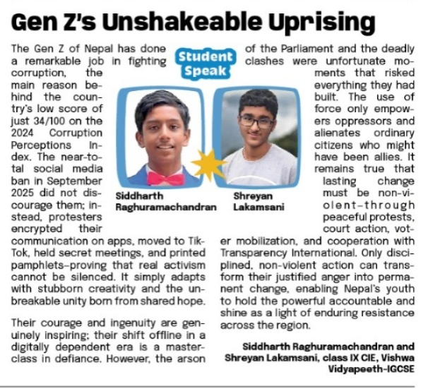 We are elated to see our young poetess Hema Agarwal of Grade 6, with her poem in Today’s Student edition -Times of India(Epaper).